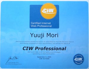 前回のCIWサイトデザイナーの合格証明書が送られてきました。